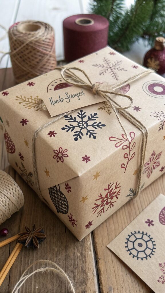 Description: Stamp designs onto fabric pieces and use them to wrap gifts, combining personalization with sustainability.