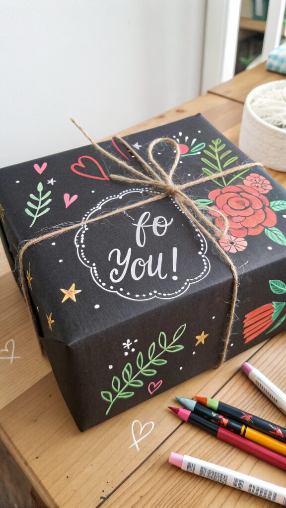 - Use chalk to write messages or draw designs on the wrapped gift.