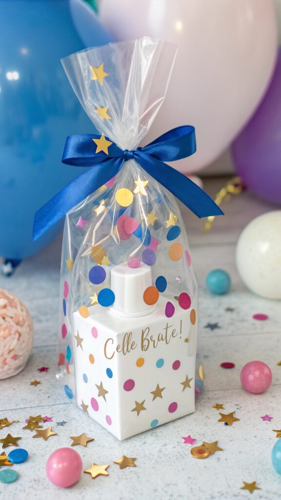 Description: Encase gifts in clear cellophane filled with confetti for a festive presentation.