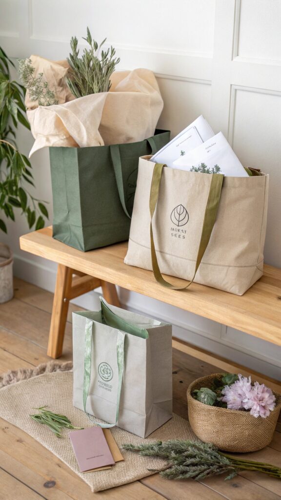 Description: Place gifts inside reusable tote bags, serving as both wrap and an additional gift.