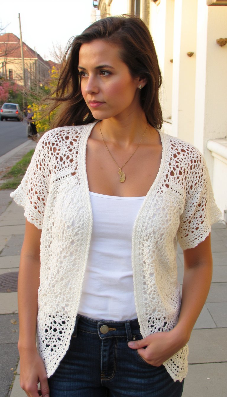 Filet crochet, which creates a mesh grid perfect for pictorial designs, makes for a stunning, heirloom-quality cardigan. Imagine a delicate floral vine running up the front panels or a subtle geometric motif. It’s lacework with a purpose.