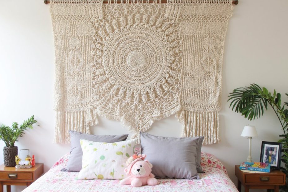Think of this as the queen of your crochet wall decor collection. A large, intricate mandala combines the timeless appeal of macramé with the cozy precision of crochet. Work it in natural cotton for a boho vibe or sleek black yarn for a modern edge.