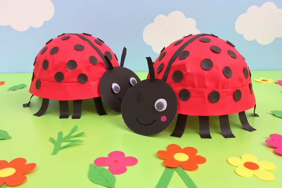 Give your ladybug some lift! Use a red paper bowl as the body. Cut wings from black paper and attach them with a brass fastener so they can open and close. Hang it from the ceiling with some string and watch it “fly” in the breeze. It adds a whole new dynamic to craft time.