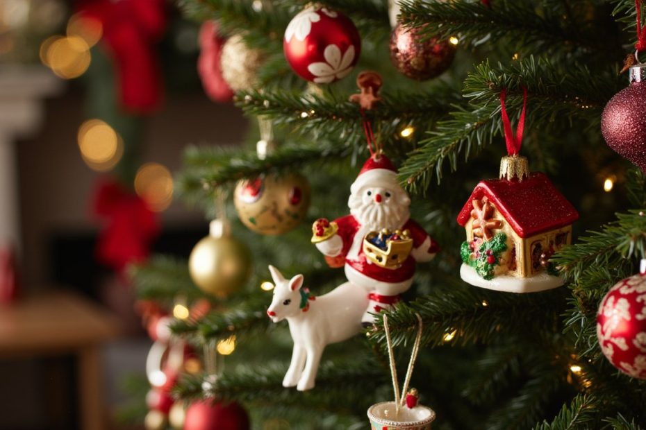 Imagine a tiny, glowing village nestled in your Christmas tree. Miniature pottery houses, often with a hole in the back for a battery-operated tea light, create the most enchanting scene. The warm light flickering through the tiny windows adds an incredible depth and coziness. It’s like a little holiday neighborhood hiding in the branches.